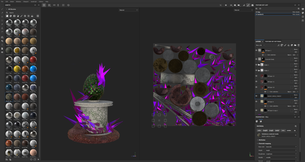 Now that I have two different crystal cluster variants for the environment, I can use them as storytelling by scattering these crystals everywhere in the environment. I will put them in caves, and within the forest near some trees and spread them naturally with the same texture and glow heartbeat. I was told that it was a better idea to have a bit of variety within the size and width of a cluster.