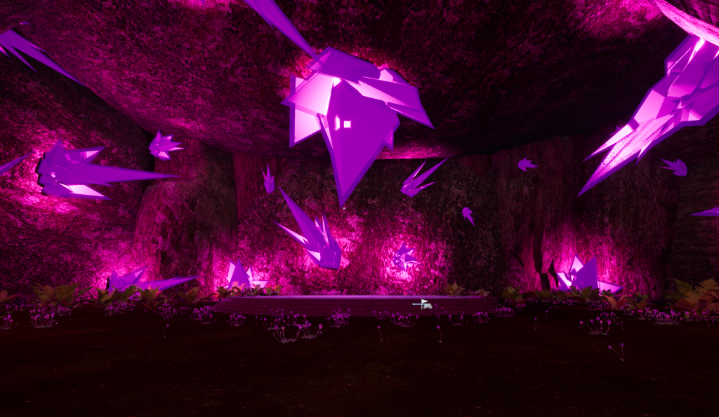 By placing the crystals within the cave, I can have plants growing within the cave because they provide a light for the plants to grow. I added some more detail around the crystals of the environment by adding infected purple plants near the crystal as if the crystal is infecting the nearby plants turning them into purple plants.