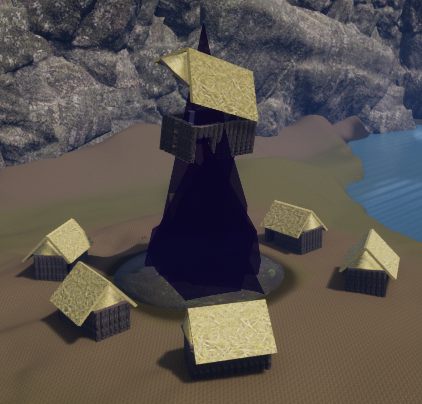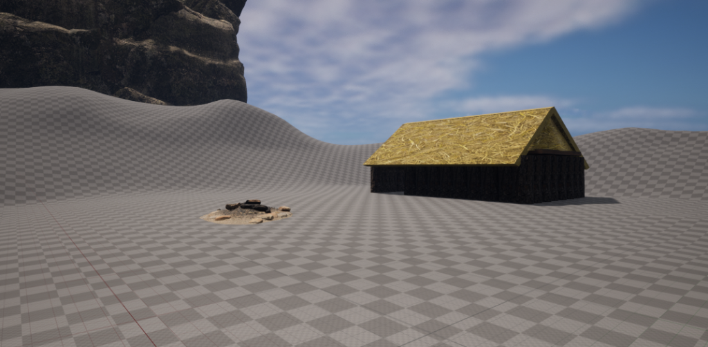I’ve spent a while texturing, adding props, changing the map and attending to the visual issues with the environment. When updating the environment, I felt that it was all coming together really well and I am progressing/ learning new features along the way. As I was texturing, I didn’t just use random textures, I chose the best textures best suited for each part of the environment. For example, a brown rocky texture for the cave (which also fits with my centre piece), a wood log texture for the village houses, and a hay roof texture on top of each house.