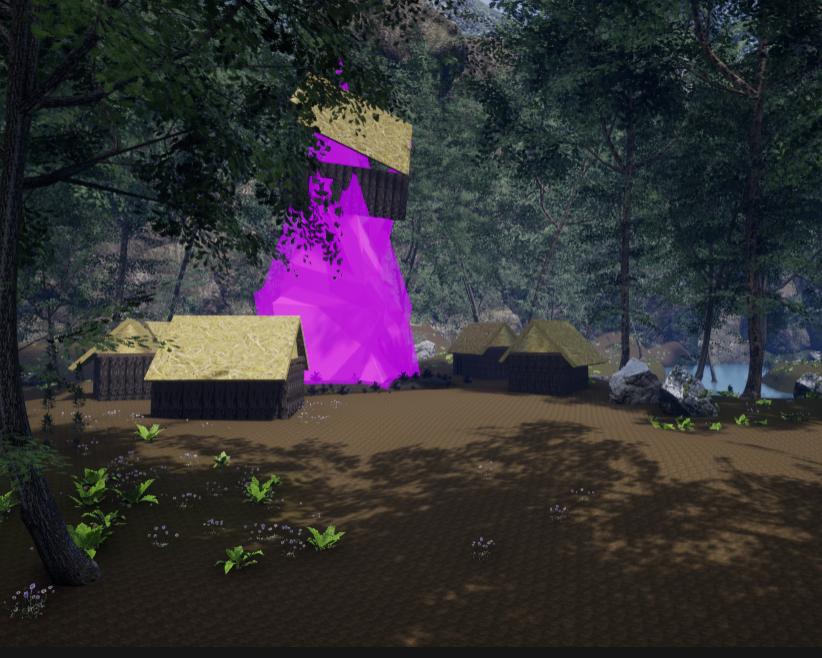 I also added textures to the cave by adding a generic brown rocky texture with the help of Quixel Bridge. As well as the village houses, where I found the hay and log textures.