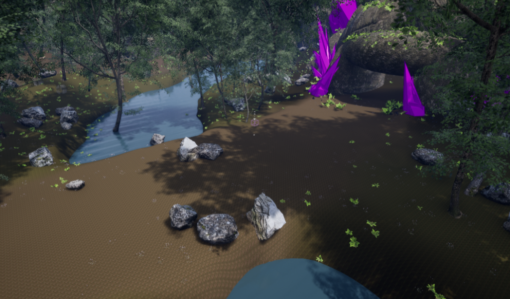 Next, I moved on to the rocks, resized and spread them around the environment. Placing rocks with slightly different sizes from each other and scattered them within the forest, near the brook (stream), a little on the path and quite a bit near the cave.