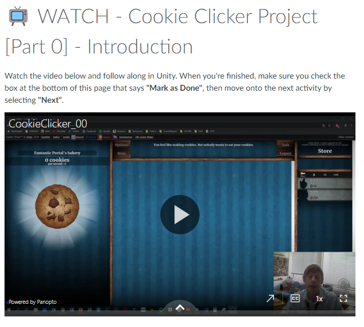 For this week, I was given a task to fully create a cookie clicker game on unity and publish that game on a website called itch.io. When being introduced with the task, we where learning how to create the building blocks of our game. We where sent video step by guides on how to make our own cookie clicker game made by one of our lecturers. Those videos gave us an in-depth view on how we start working.